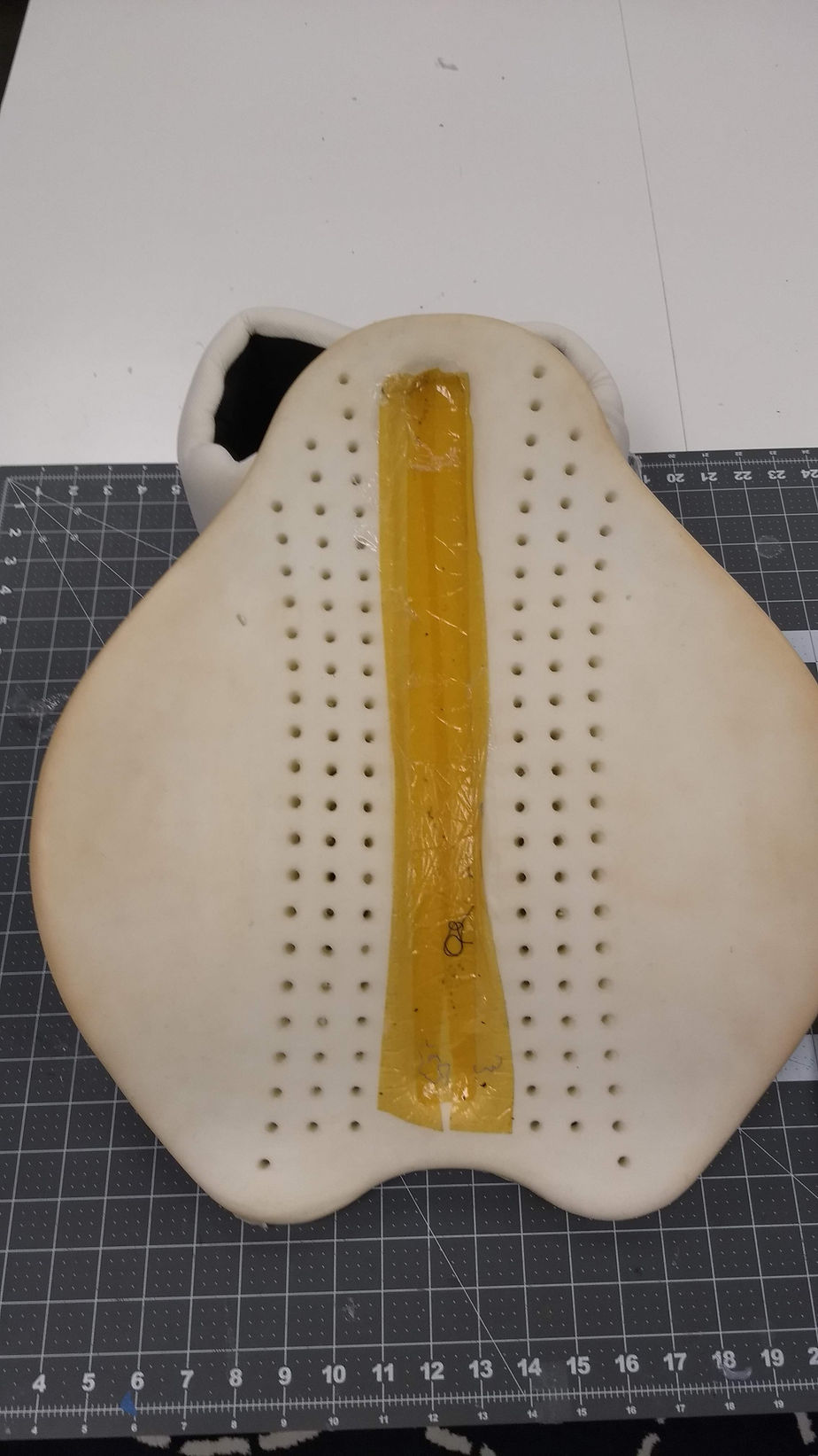 With this use case in mind chamfers were added to better fit in between seat bolsters. Ventilation was improved with both punched holes and an improved 3D mesh cover. The strap was made adjustable and given an easier to use buckle. A handle was added for easier transport as well.
